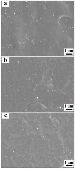 SEM images of the Si747@BTO/ENR composite with various loadings of ESO. (a) 10 phr, (b) 30 phr, and (c) 50 phr.
