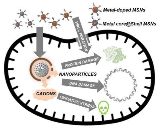 - Castillo, R.R.; Vallet-Regí, M. Recent Advances Toward the Use of Mesoporous Silica Nanoparticles for the Treatment of Bacterial Infections. Int. J. Nanomed. 2021, 16, 4409–4430. [Google Scholar] [CrossRef] [PubMed]