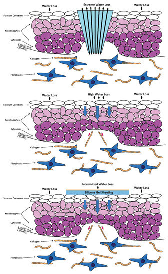 - Wang, F.; Li, X.; Wang, X.; Jiang, X. Efficacy of topical silicone gel in scar management: A systematic review and meta-analysis of randomised controlled trials. Int. Wound J. 2020, 17, 765. [Google Scholar] [CrossRef]