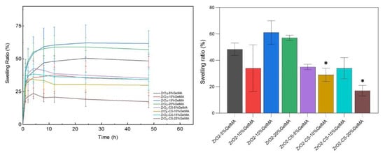 3.2.3. ZrO2–Chitosan Particles–GelMA Composite Scaffolds
