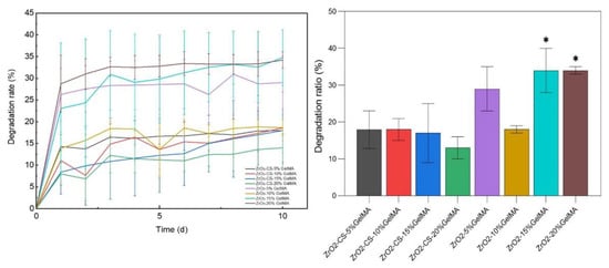 APA StyleJi, Y., Hou, M., Zhang, J., Jin, M., Wang, T., Yang, H., & Zhang, X. (2022). Preparation and Properties of Partial-Degradable ZrO2–Chitosan Particles–GelMA Composite Scaffolds. Polymers, 14(19), 4233. https://doi.org/10.3390/polym14194233