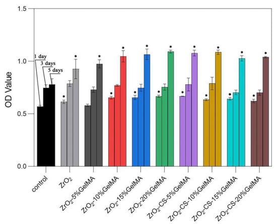 3.2.2. ZrO2–GelMA Composite Scaffolds