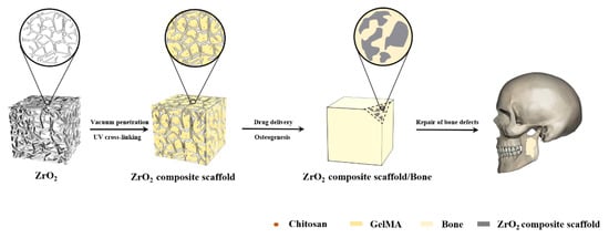 Ji, Y.; Hou, M.; Zhang, J.; Jin, M.; Wang, T.; Yang, H.; Zhang, X. Preparation and Properties of Partial-Degradable ZrO2–Chitosan Particles–GelMA Composite Scaffolds. Polymers 2022, 14, 4233. https://doi.org/10.3390/polym14194233