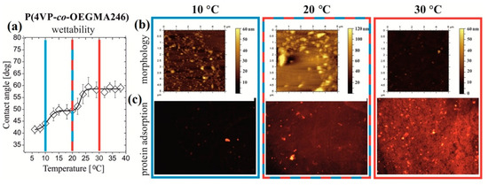 - Stetsyshyn, Y.; Raczkowska, J.; Lishchynskyi, O.; Bernasik, A.; Kostruba, A.; Harhay, K.; Ohar, H.; Marzec, M.M.; Budkowski, A. Temperature-Controlled Three-Stage Switching of Wetting, Morphology, and Protein Adsorption. ACS Appl. Mater. Interfaces 2017, 9, 12035–12045. [Google Scholar] [CrossRef]