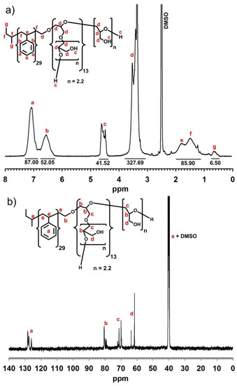 3.1. Synthesis and Characterization of Polystyrene-b-(polyglycidol-g-polyglycidol)