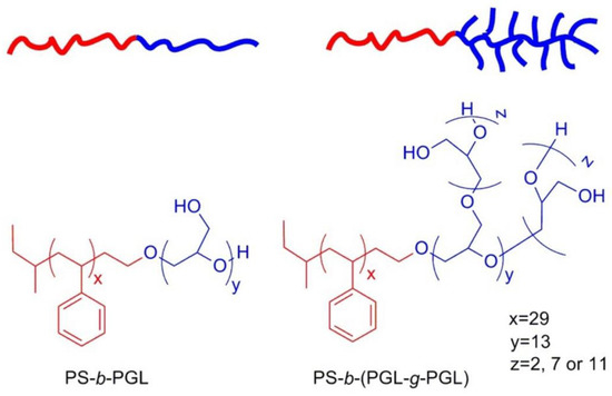 2.2.1. Synthesis of PS-b-(PGL-g-PGL) Copolymers