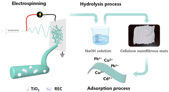 - Wang, C.; Zhan, Y.; Wu, Y.; Shi, X.; Du, Y.; Luo, Y.; Deng, H. TiO2/rectorite-trapped cellulose composite nanofibrous mats for multiple heavy metal adsorption. Int. J. Biol. Macromol. 2021, 183, 245–253. [Google Scholar] [CrossRef]