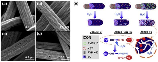 - Yu, D.G.; Yang, C.; Jin, M.; Williams, G.R.; Zou, H.; Wang, X.; Annie Bligh, S.W. Medicated Janus fibers fabricated using a Teflon-coated side-by-side spinneret. Colloids Surf. B Biointerfaces 2016, 138, 110–116. [Google Scholar] [CrossRef] [Green Version]