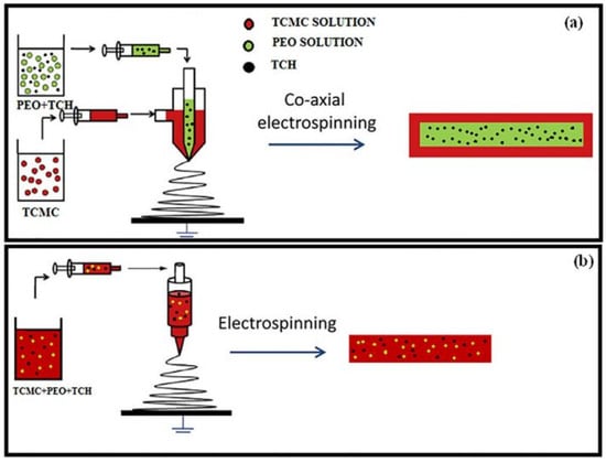 - Han, D.; Steckl, A.J. Coaxial Electrospinning Formation of Complex Polymer Fibers and their Applications. Chempluschem 2019, 84, 1453–1497. [Google Scholar] [CrossRef] [PubMed]