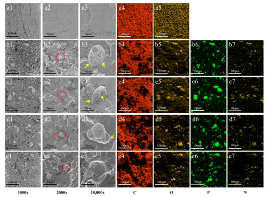 3.5. The Structural and Morphology Analysis of Residuary Char of PLA Composites