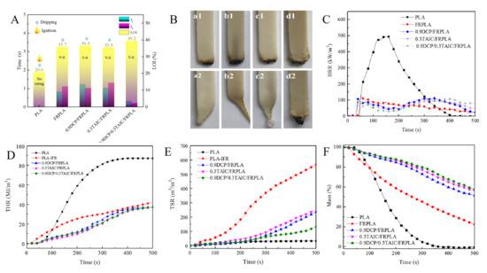 3.4. The Flame Retardant Performance of PLA and Its Composites