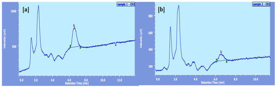 Chromatogram of (a) S3 batch and (b) Itrostred gel.
