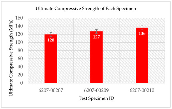 Ultimate compressive strength of each specimen after the RTD multifunctional Compressive-Electrical test.