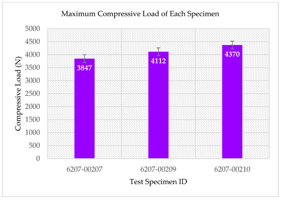 Maximum compressive load of each specimen after the RTD multifunctional Compressive-Electrical test.