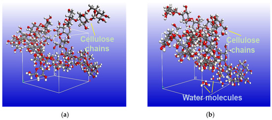 The two cellulose polymer insulation models: (a) Cellulose model; (b) Cellulose model with 3.5% water.