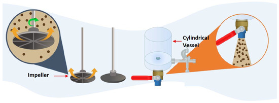 Flocculation of the synthetic tailings suspensions at the selected quartz/kaolin ratio was achieved in a 1 L capacity cylindrical vessel, 100 mm in diameter, with an 80 mm diameter PTFE turbine impeller at the end of a vertical axis (4 mm diameter) used to keep particles suspended. The impeller base was positioned 20 mm above the bottom surface of the container (Figure 4). The required solid mineral phases were added to a fixed volume of seawater at the desired Rsw/Tsw ratio, to achieve a mass of 270 g. The subsequent volume of the flocculant solution to give the required dosage (expressed as grams of flocculant per tonne of solids, e.g., g/t) and a volume of water was together then adequate to ensure a total suspension mass of 300 g. This methodology maintained the same solid concentration (10 wt%) for all flocculation experiments.