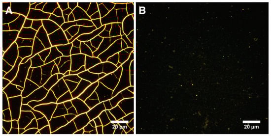 Analysis of morphology and the number of adhered cells was determined by means of fluorescence microscopy. For this, hTERT-transduced MSCs at a density of 105 cells per well were seeded onto a 6-well plate containing three samples of substrates each. After 16 h of cultivation under standard conditions, cell nuclei were stained with 4′,6-diamidino-2-phenylindole (DAPI; 300 nM), and actin filaments were stained with phalloidin (Phalloidin–tetramethylrhodamine B isothiocyanate; 50 µg/mL) accordingly to the manufacturers’ protocols (Sigma Aldrich, Germany). Cell counting and morphology analysis were performed using a Carl Zeiss Axio Imager Z2 fluorescence microscope (Carl Zeiss, Germany).