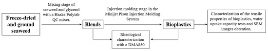 Scheme of the production process and characterization of bioplastics.