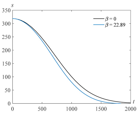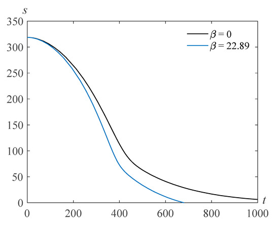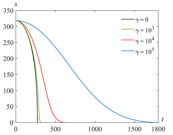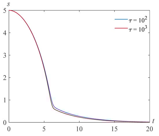 Figure 8 illustrates the solutions s(t) of problem (24), (25) at and various values of the parameter