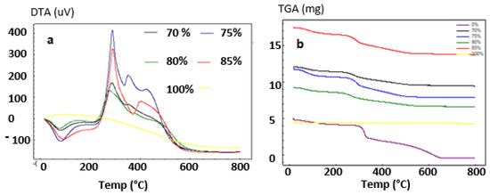 DTA (a) and TGA; (b) Spectrum of HAp/CTs composites.