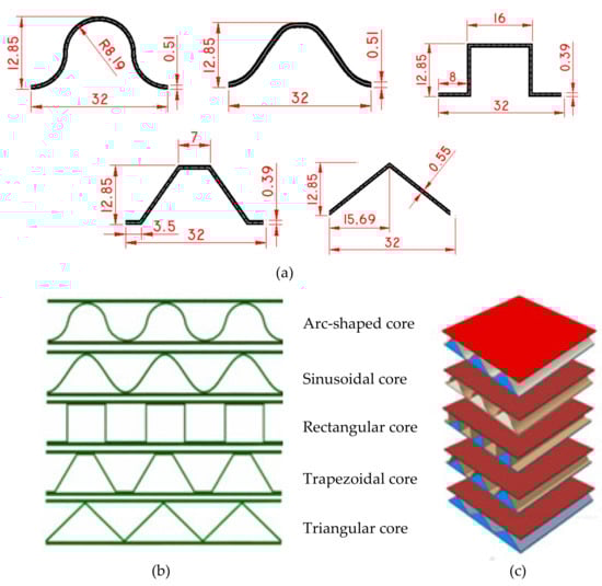 - Ma, Q.; Rejab, M.R.M.; Siregar, J.; Guan, Z. A review of the recent trends on core structures and impact response of sandwich panels. J. Compos. Mater. 2021, 55, 2513–2555. [Google Scholar] [CrossRef]