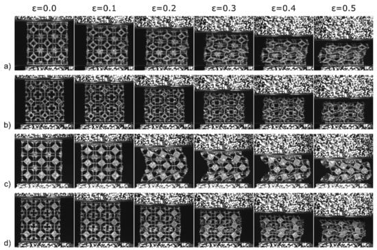 - Neuhauserova, M.; Fíla, T.; Koudelka, P.; Falta, J.; Rada, V.; Šleichrt, J.; Zlámal, P.; Jiroušek, O. Compressive Behaviour of Additively Manufactured Periodical Re-Entrant Tetrakaidecahedral Lattices at Low and High Strain-Rates. Metals 2021, 11, 1196. [Google Scholar] [CrossRef]