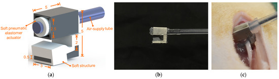 - Rateni, G.; Cianchetti, M.; Ciuti, G.; Menciassi, A.; Laschi, C. Design and development of a soft robotic gripper for manipulation in minimally invasive surgery: A proof of concept. Meccanica 2015, 50, 2855–2863. [Google Scholar] [CrossRef]