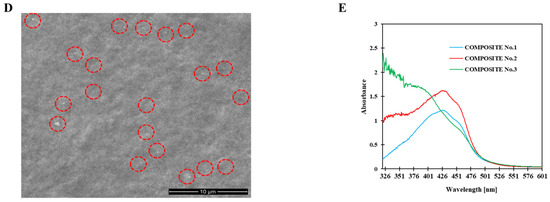 The next films were prepared in the same way using 12 mL of CUR-REO, 11 mL of MMT, and 6 mL of AgNPs-YM extract (composite No. 2) or 18 mL of CUR-REO, 11 mL of MMT, and 6 mL of AgNPs-YM extract (composite No. 3).