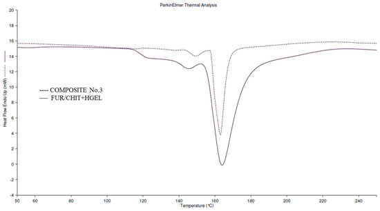 Furthermore, 6 mL of CUR-REO, 11 mL of MMT, and 6 mL of AgNPs-YM extracts were added to the FUR solution. The solution prepared in this way was poured onto a tray. When the solution turned into a gel, 110 mL of the CHIT+HGEL solution was poured, which constituted the 2nd layer. This type of film is described as composite No. 1.