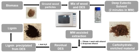 30. Chen, Z.; Ragauskas, A.; Wan, C. Lignin extraction and upgrading using deep eutectic solvents. Ind. Crops Prod. 2020, 147, 112241–112272. [Google Scholar] [CrossRef]