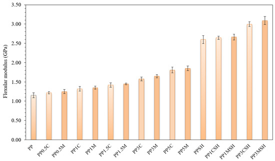 In this research, the efficiency of modification of PP by SH (40 wt.%), C, and M (1 and 3 wt.%) in the presence of PPgMA (3 wt.%) compatibiliser is demonstrated. The following results have been obtained:
