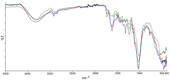 Lignocellulosic biomasses were characterized as total content and in Figure 1, the overlap of the four different FTIR spectrums was reported. They are mostly composed of lignin, hemicellulose, and cellulose, but there are small differences between the peak proportions due to their structural complexity.