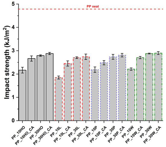 The results of Charpy impact tests for PP-based composites.