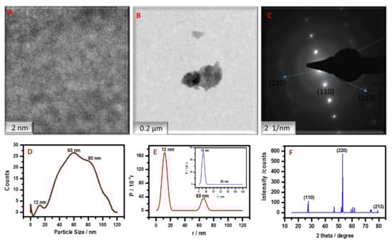 Microscopic characterization was achieved using high resolution transmission electron microscopy (HRTEM) using Tecnai G2F2O X-Twin MAT 200 kV field emission transmission electron microscope from FEI-ThermoFischer Scientific (Eindhoven, Netherlands), scanning electron microscopy (SEM) using ZEISS ULTRA scanning electron microscope equipped with an energy dispersive spectrometer and a Tecnai G2F2O X-Twin MAT 200 kV field emission transmission electron microscope from FEI (Eindhoven, Netherlands). Small-angle X-ray scattering (SAXS) analysis for particle size determination was carried out on an Anton Paar SAXSpace system (Graz, Austria), using copper Kα radiation (0.154 nm) equipped with a 1 D Mythen 2 position sensitive detector and a beam stop alignment. The sample was scattered at a thickness of 315 mm and the sample chamber was evacuated to below 5 mbar to avoid further air scattering. X-ray diffraction patterns for the material were obtained using a D8 advance diffractometer (BRUKER-AXS) employing copper Ka radiation with a wavelength of 0.154 nm, operating at a voltage of 40 kV and current of 40 mA.