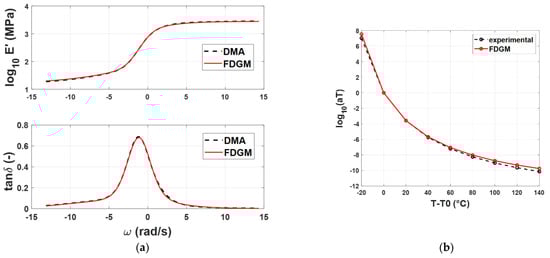 For compound A, Figure 8a compares the experimental master curves with the results obtained by the identification procedure, while in Figure 8b, the WLF law is shown.