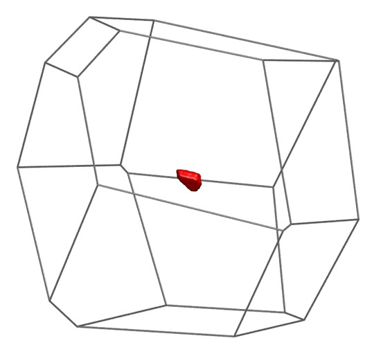 Volume accessible to a monomer with within its Voronoi cell. For this monomer: . Accessible volume is colored in red and the Voronoi polyhedron is shown in wireframe representation.