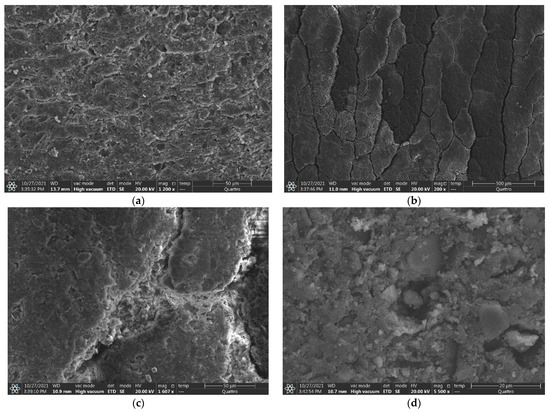 SEM results of 110 kV samples from factory C: (a) C-1, (b,c) C-2, (d) C-3.