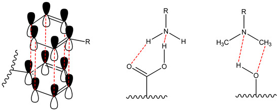 Scheme of non-covalent bonding between dye and matrix (π-π stacking and hydrogen bonds).