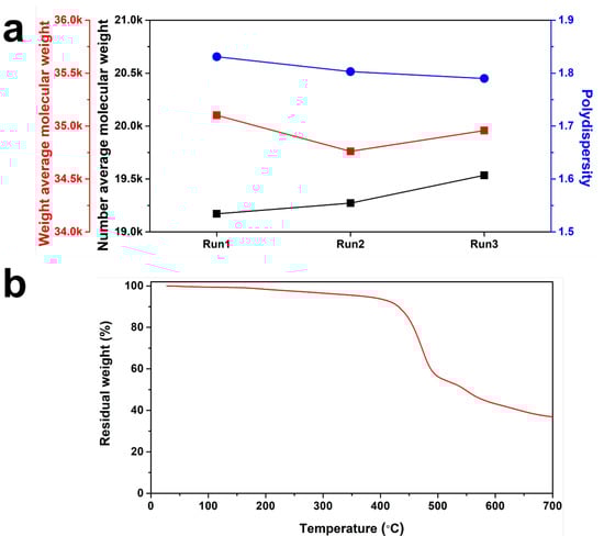 Macromolecular properties of the PAIX. (a) GPC and (b) TGA results.