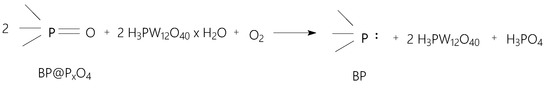 The reaction of BP having a PxOy layer (BP@ PxOy) with H3PW12O40 x H2O.