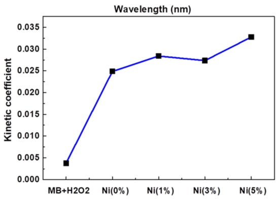 Kinetic constants of reaction between MB and ZnO doped with different Ni concentrations.