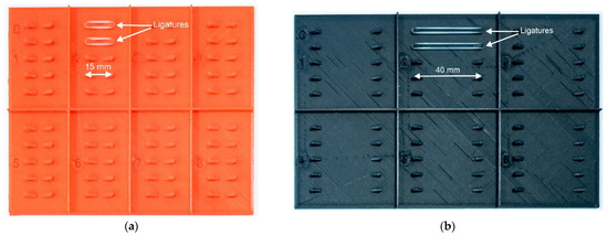 (a) The 15 mm ligature holder with two sample ligatures. (b) The 40 mm ligature holder with two sample ligatures.