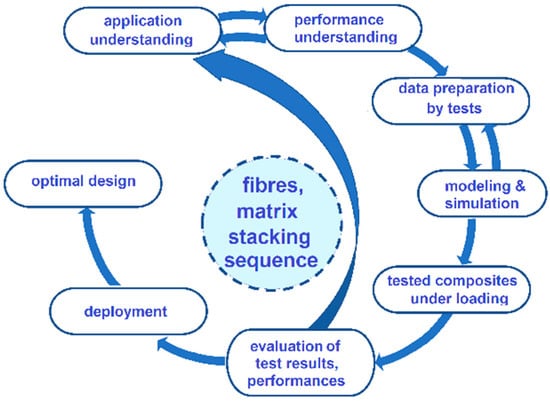 The model proposed for the study of CFRP performance implies a procedure of simple iterative optimization, in which the analysis of autoclave technology (AT) to identify the optimal mechanical parameters is carried out (verification of the process with the lowest risk at loading), as shown in Figure 1.