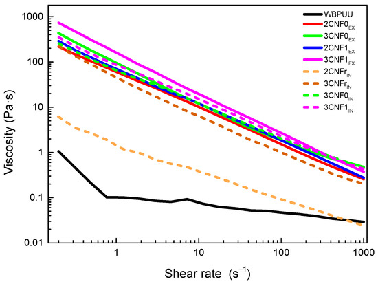 - Vadillo, J.; Larraza, I.; Calvo-Correas, T.; Gabilondo, N.; Derail, C.; Eceiza, A. Role of in situ added cellulose nanocrystals as rheological modulator of novel waterborne polyurethane urea for 3D-printing technology. Cellulose 2021, 28, 4729–4744. [Google Scholar] [CrossRef]