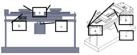The mechanical device called SAHF-L: (a) sliding clamps; (b) cogged belt; (c) stepper motor.