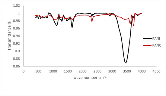 FTIR spectra for the PANI and PANC nanocomposite.