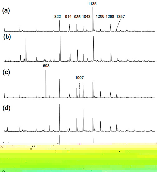 MALDI-TOF analysis showed the presence in the products of compounds with m/z values and possible structures, as presented in Table 2.
