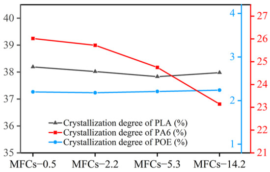 Crystallization degree of PLA, PA6 and POE.
