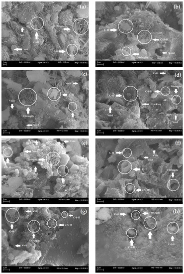 - Farzanian, K.; Pimenta Teixeira, K.; Perdigão Rocha, I.; de Sa Carneiro, L.; Ghahremaninezhad, A. The mechanical strength, degree of hydration, and electrical resistivity of cement pastes modified with superabsorbent polymers. Constr. Build. Mater. 2016, 109, 156–165. [Google Scholar] [CrossRef]