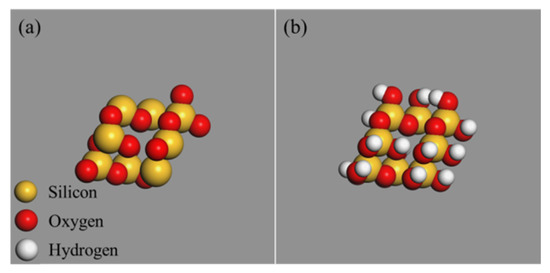 SiO2 nanocluster: (a) original SiO2 nanocluster; (b) modified SiO2 nanocluster.